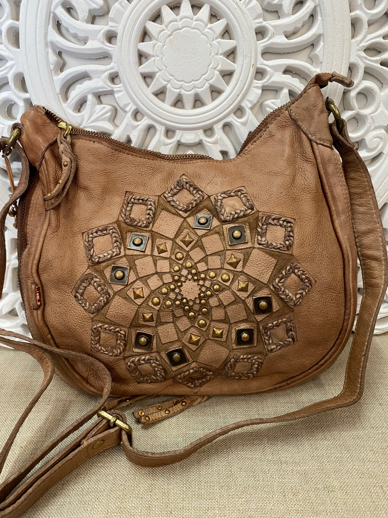 Let this beautiful taupe mandala bag be the standout accessory with flowing dresses, boho tops, or your favourite casual looks. Perfect for market days or weekends out, it adds style and practicality in one effortless piece.