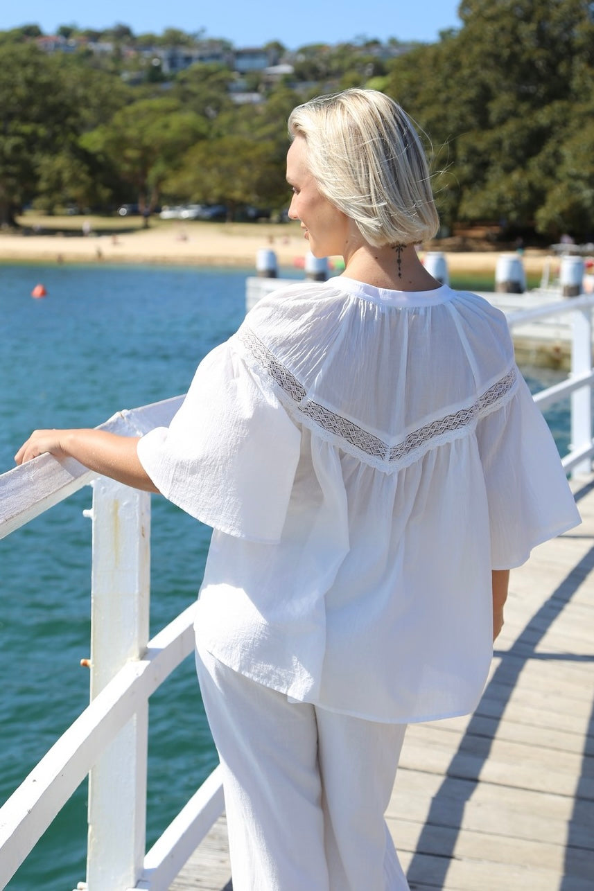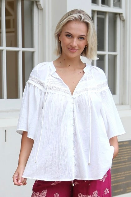 Lily Grace Short Sleeve White Lace Detail Top
