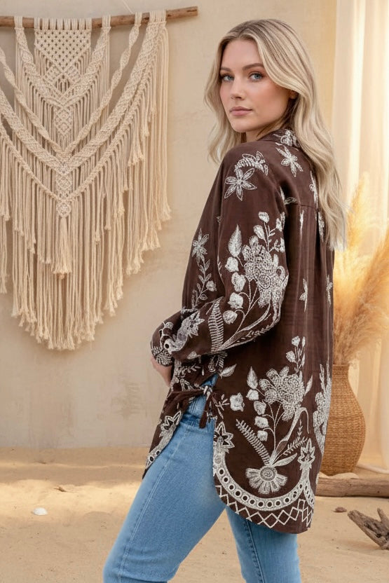 Effortlessly chic with a relaxed bohemian feel, the Sienna Shirt – Chocolate is a timeless wardrobe staple designed for versatile, everyday wear. Crafted in a rich chocolate tone, this longline shirt drapes beautifully thanks to its lightweight, breathable fabric blend.