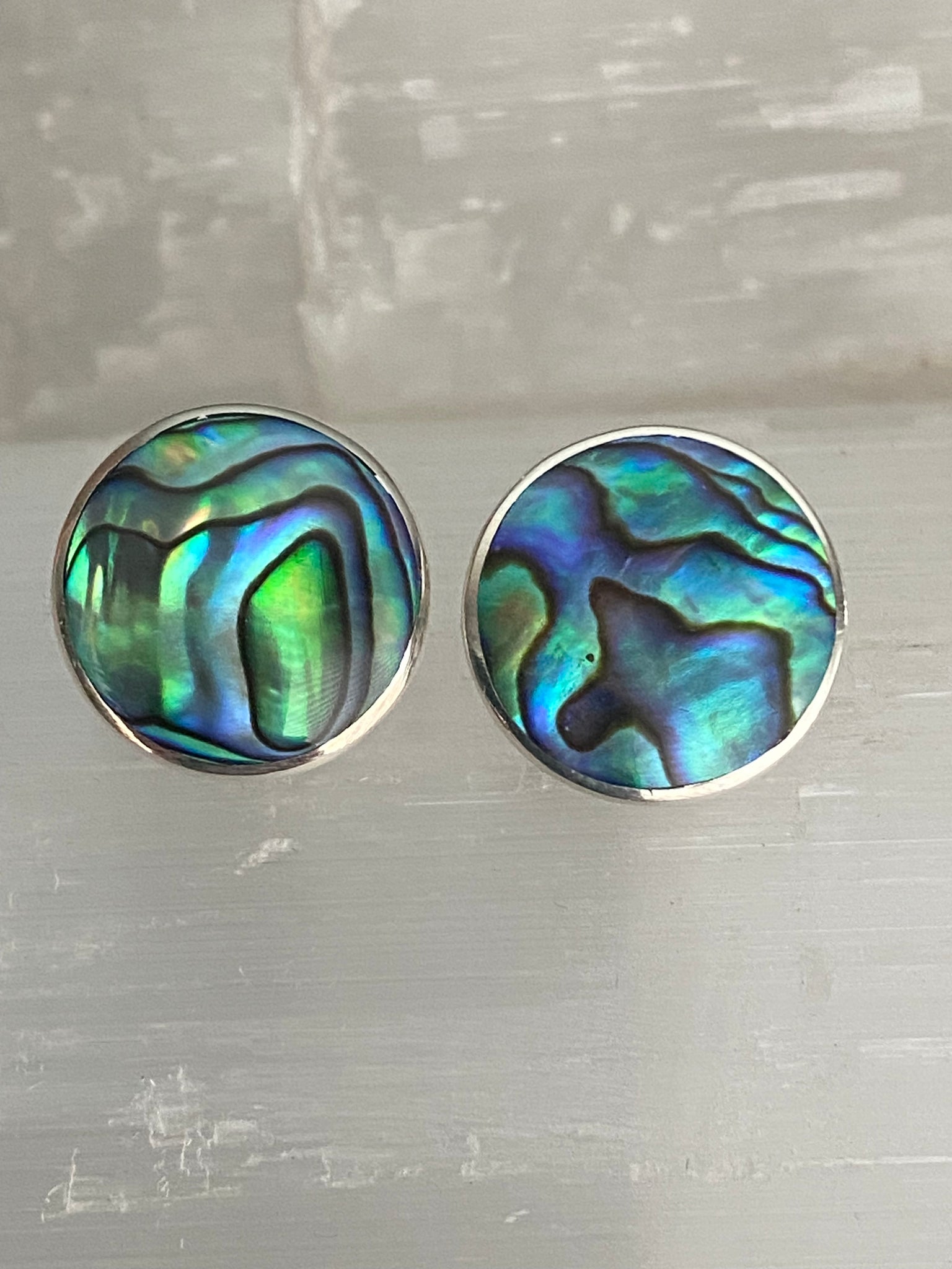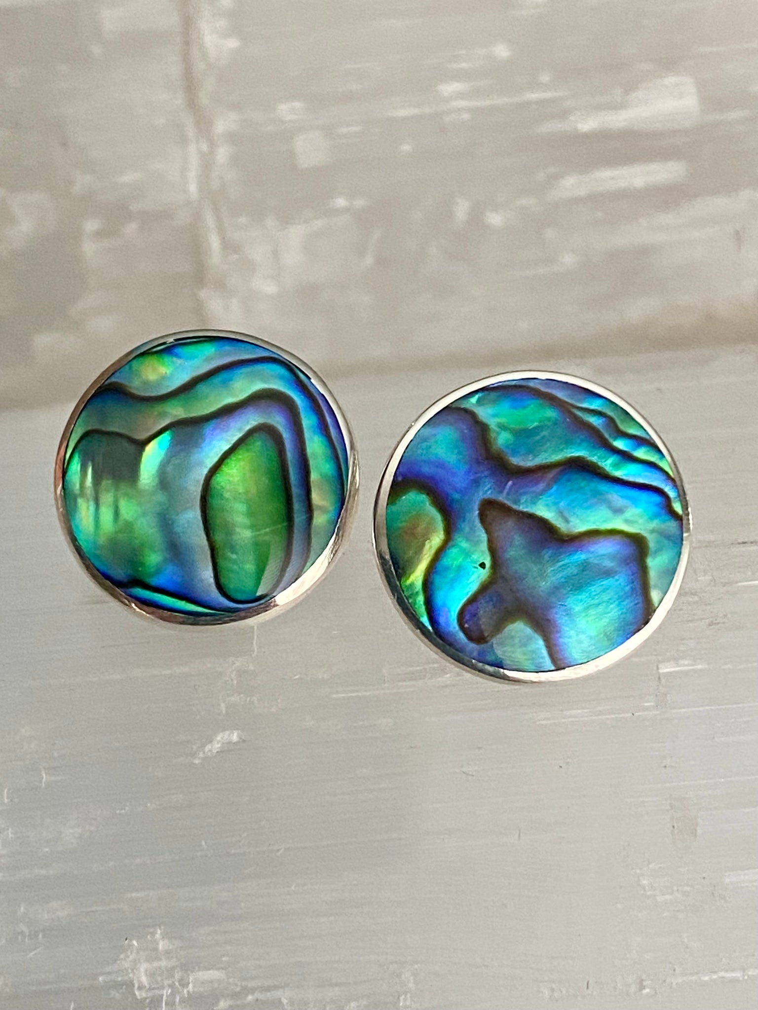 Paua Shell 15mm Sterling Silver Stud Earrings