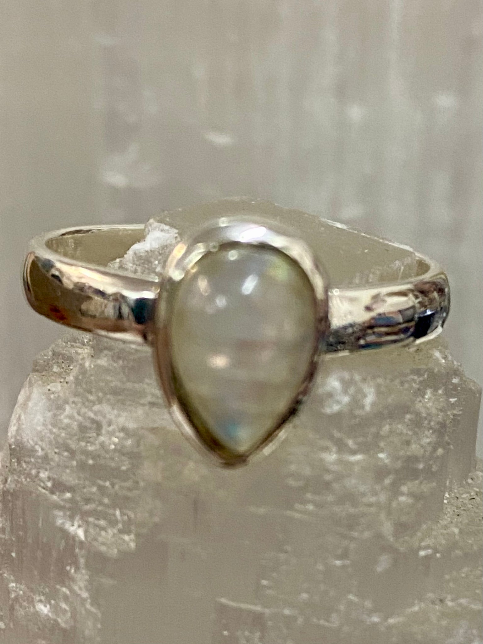 Teardrop Sterling Silver Ring - Rainbow Moonstone