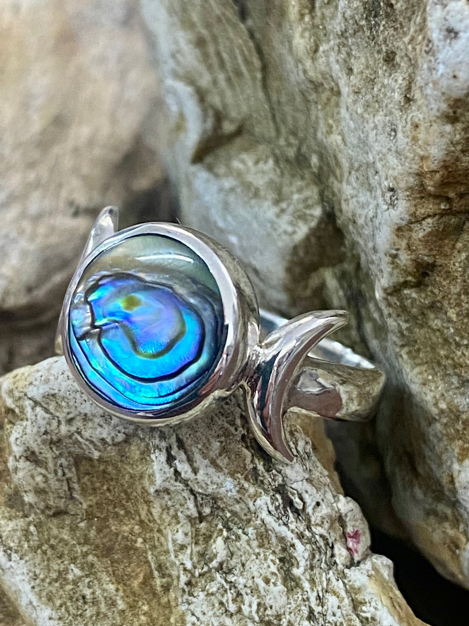 Triple Goddess Sterling Silver Ring - Paua Shell