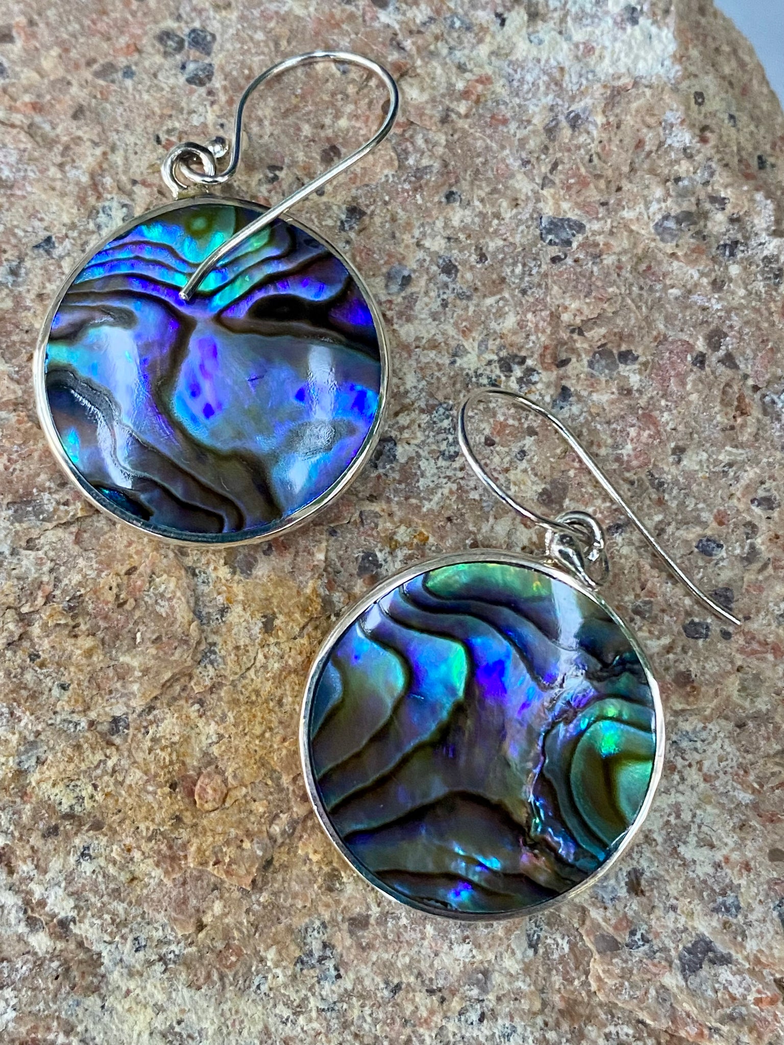 Two Sided 20mm Drop Earrings - Paua and White Mother of Pearl