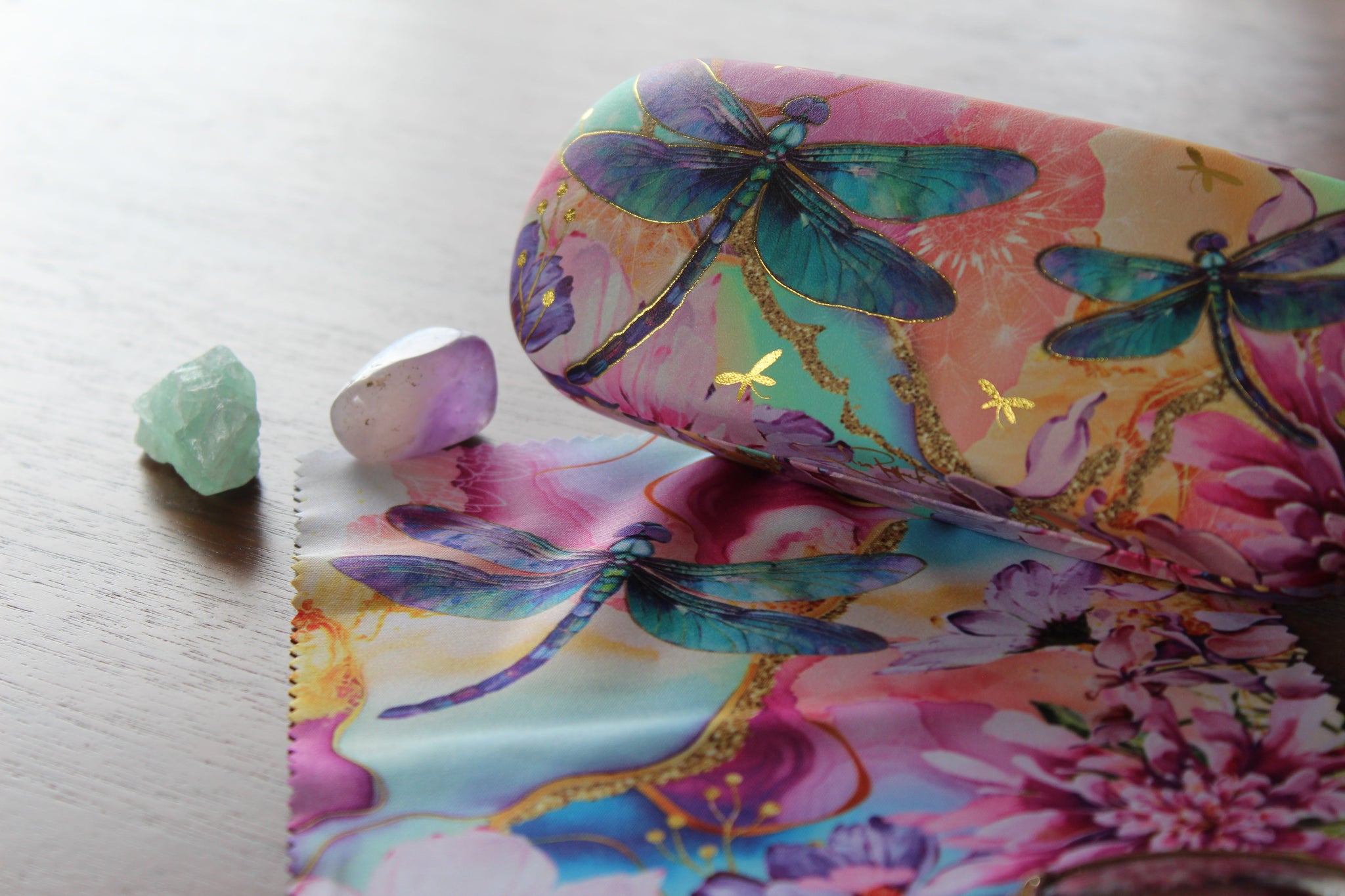 Each case comes packed in a protective box & includes a microfiber cleaning cloth printed with matching design. Glasses not included.