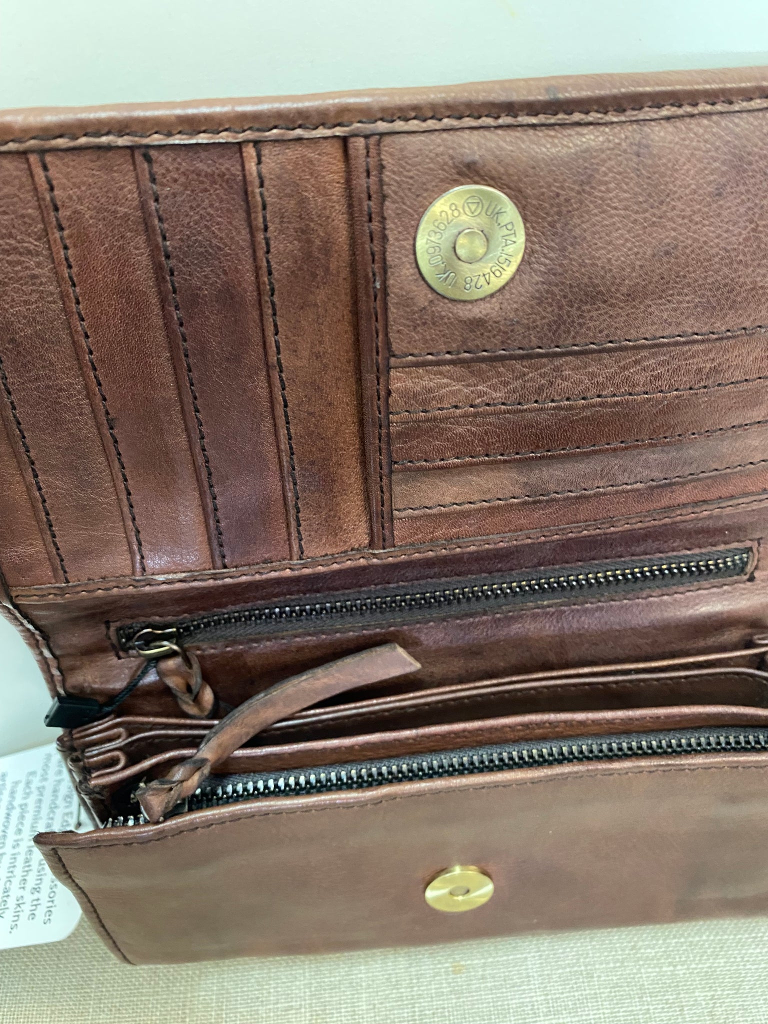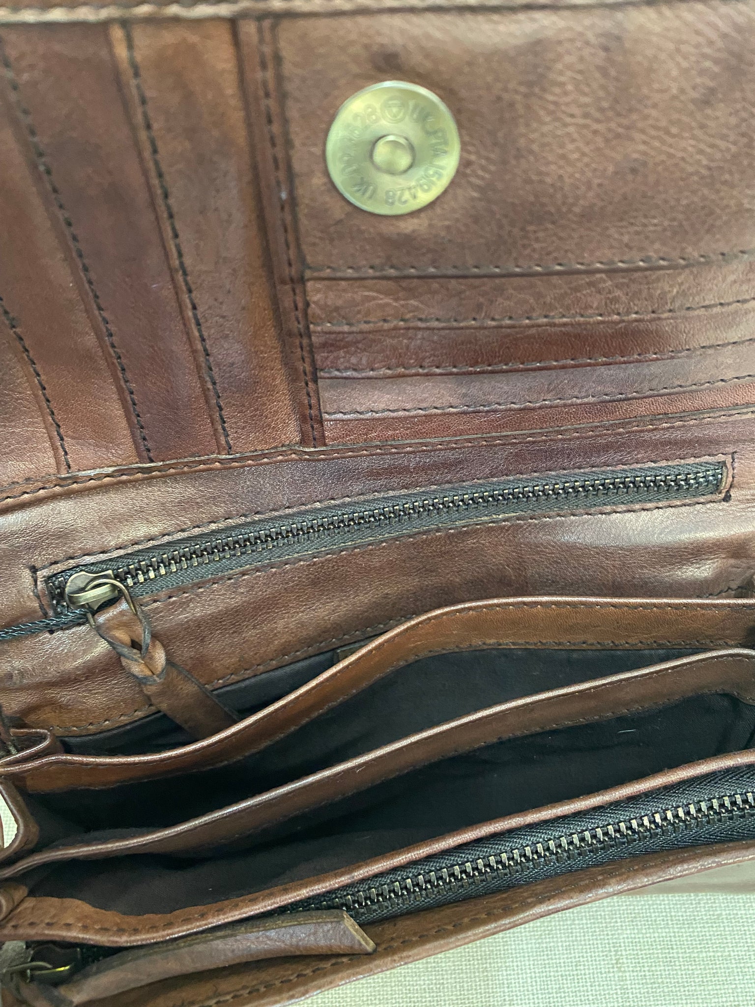 • inside: zip pockets, credit card compartments, money slot
