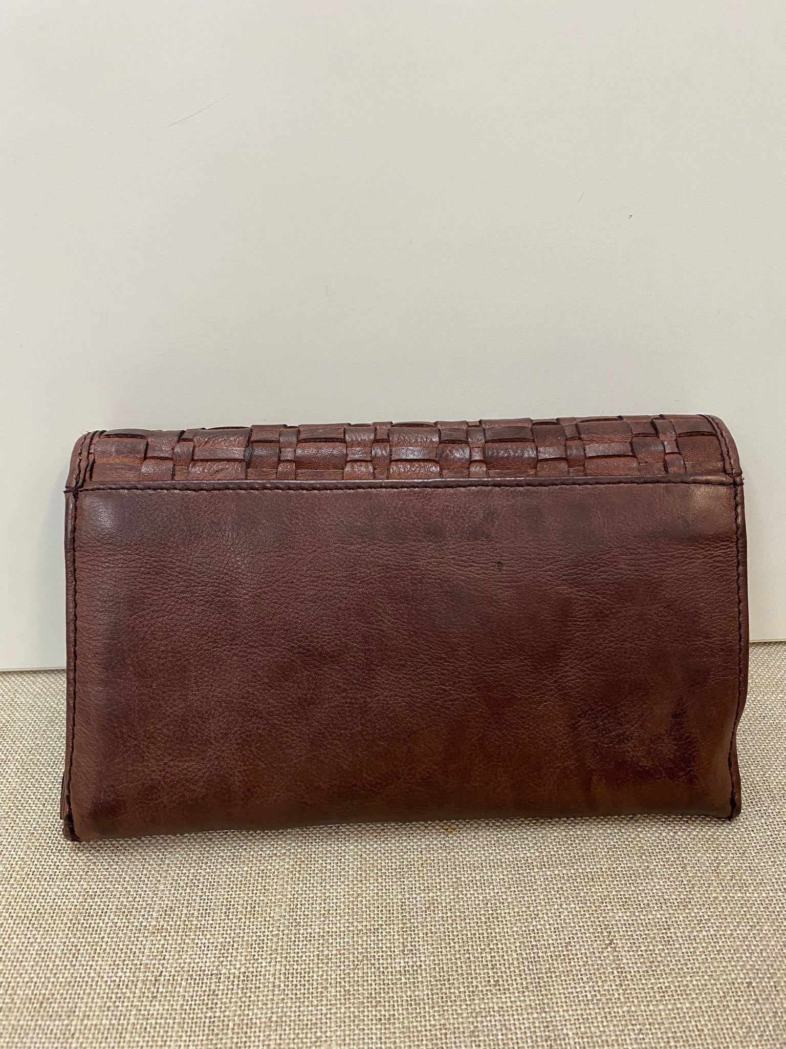 Naas Woven Washed Leather Flap Wallet – Brown