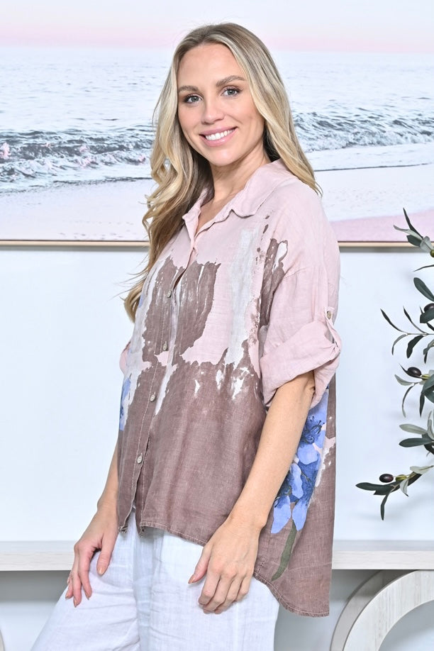 Classic, timeless and effortlessly relaxed, the Floral Linen Shirt – Pink is a wardrobe staple designed for easy everyday elegance. Crafted in Italy from 100% premium linen, this breathable piece offers a soft drape and a beautifully generous fit that flatters all shapes.