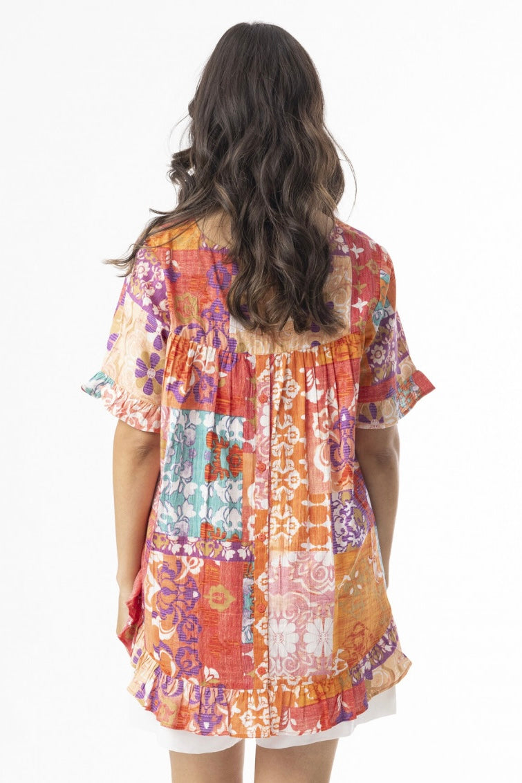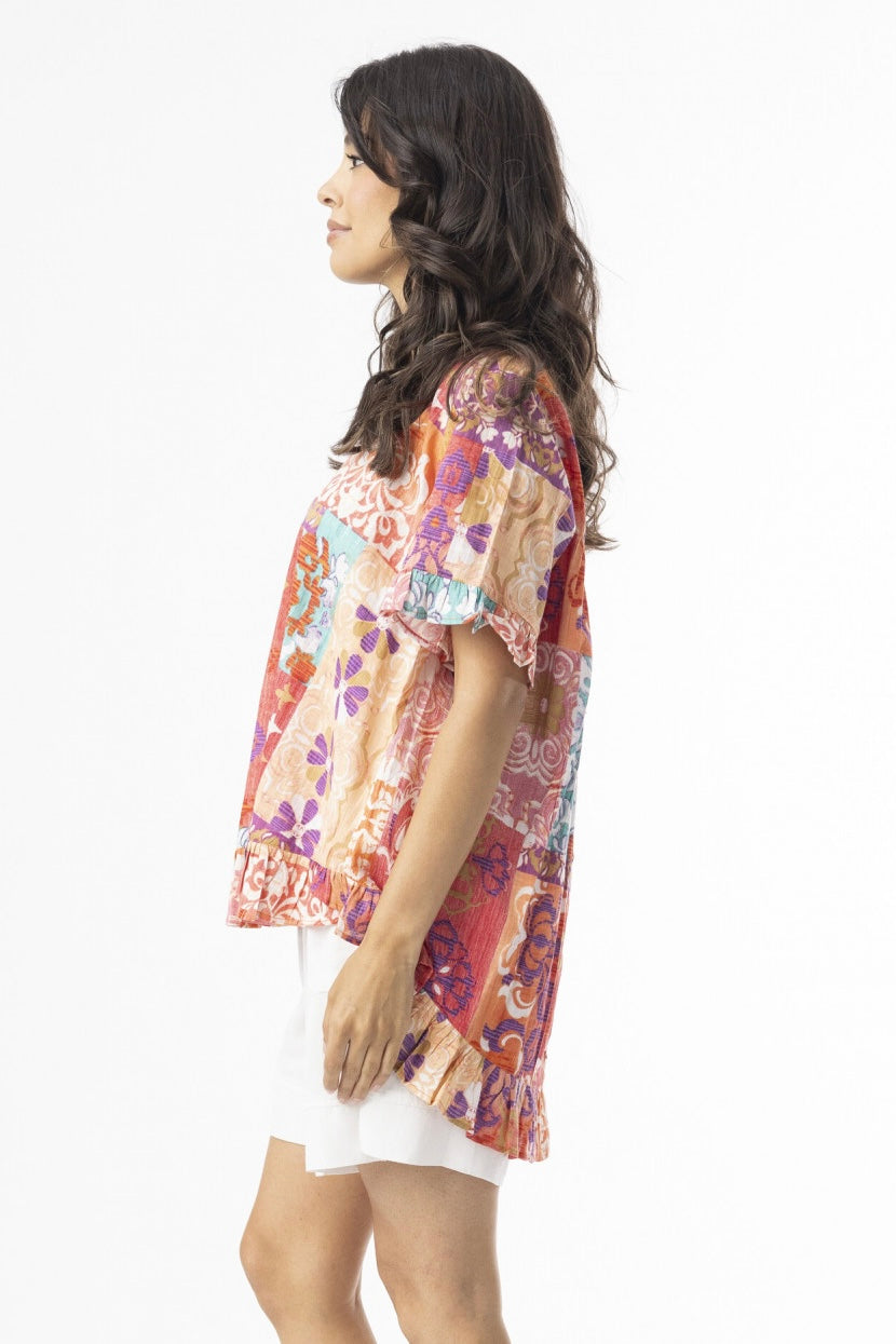 Bring colour, comfort, and effortless charm into your wardrobe with the Frill Top – Araya. Made from soft, breathable 100% organic cotton, this beautiful top features a relaxed silhouette adorned with playful frill sleeves and a matching frill hem for a touch of feminine whimsy. The vibrant Araya print adds a joyful pop of colour, making this an easy go-to piece for sunny days, relaxed weekends, and holiday styling. Light, breezy, and flattering — it’s summer dressing made simple.